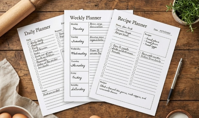 1. The Daily Nourish Planner: A focused daily sheet to track your top priorities, hydration, daily schedule, and meal prep notes. 2. The Weekly Kitchen Overview: A bird's-eye view of your week. Plan breakfast, lunch, and dinner to save money on groceries and reduce food waste. 3. The Heritage Recipe Card: A beautiful, clean template to record your favorite family recipes, ensuring they are preserved for the next generation.